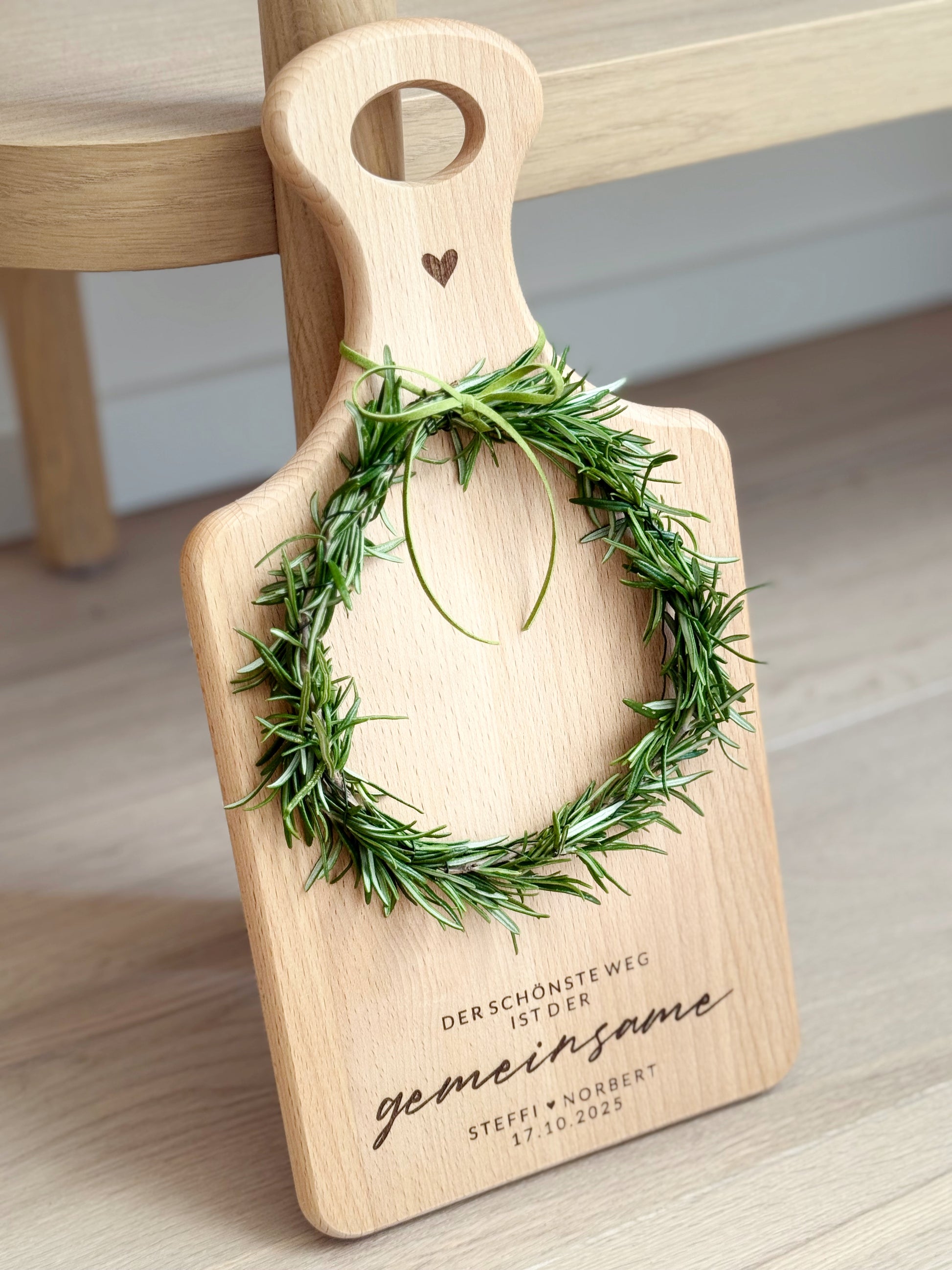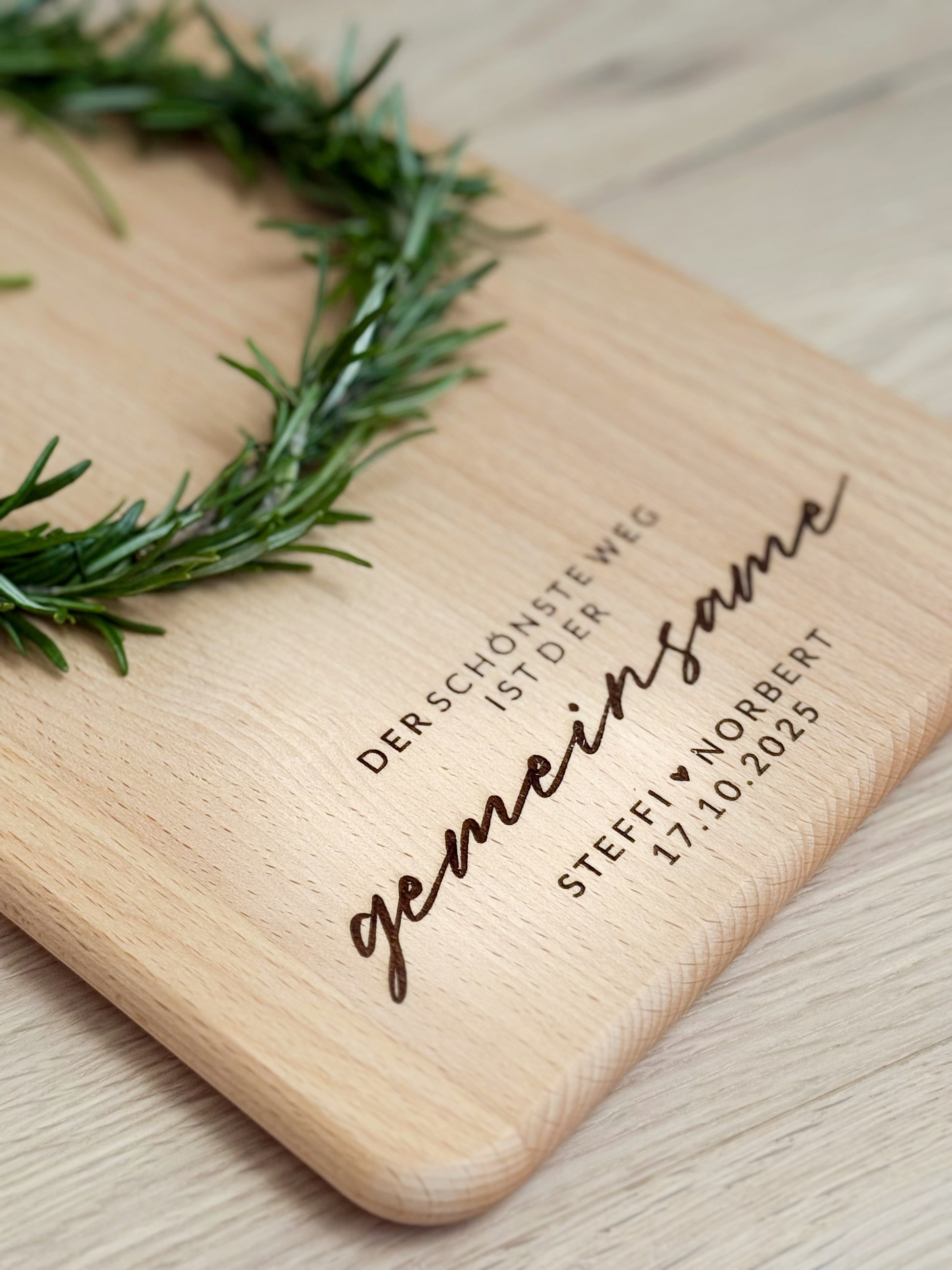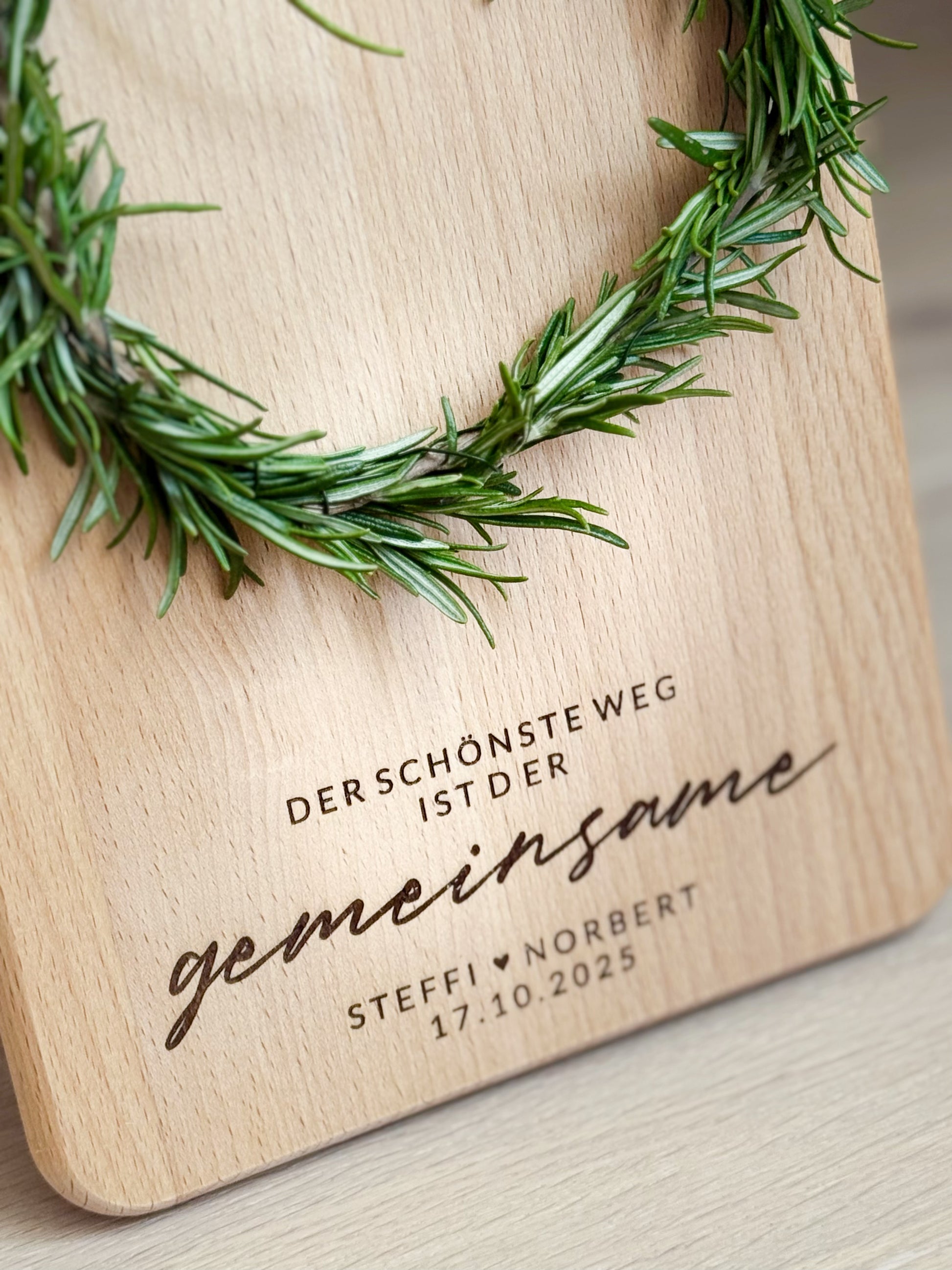 Personalisiertes Servier-/ Schneidebrett mit Gravur "Der Schönste Weg ist der gemeinsame" und Wunschname & Wunschdatum